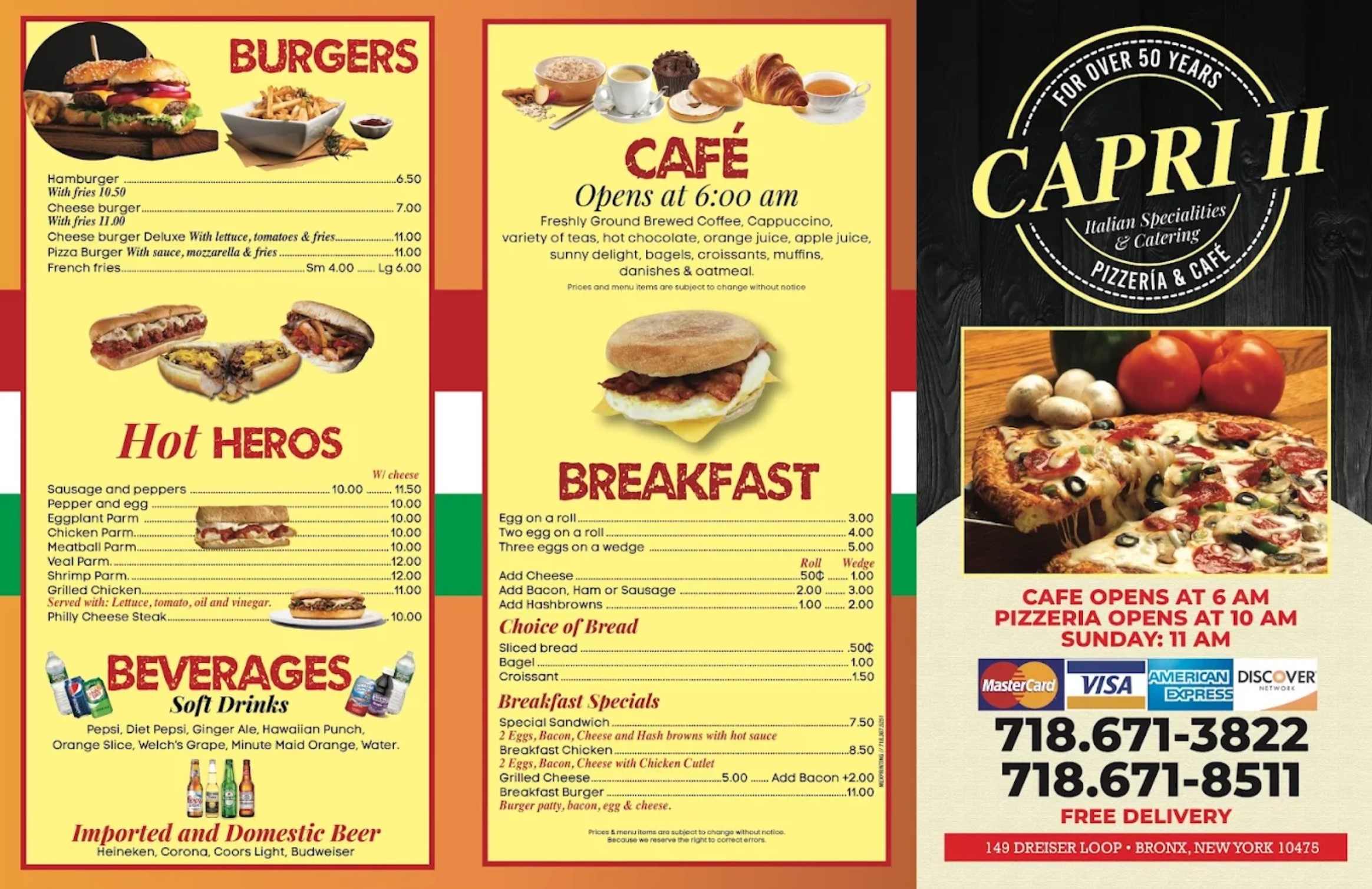 Nestled in the heart of Co-op City at 149 Dreiser Loop, Bronx, NY 10475, Capri II Pizzeria stands as a beloved cornerstone of the community—a testament to authentic Italian-American cuisine and unwavering dedication to excellence. For years, this family-owned establishment has been crafting what many consider to be among the finest pizza in the entire Bronx, earning a reputation that extends far beyond the neighborhood's boundaries. The moment customers step through the doors, they're transported to an era when quality mattered more than speed, when recipes were passed down through generations rather than mass-produced in corporate kitchens. The old school ambiance immediately embraces visitors with its warm, nostalgic atmosphere—checkered tablecloths, vintage photographs adorning the walls, and the intoxicating aroma of fresh dough, melted cheese, and carefully selected herbs wafting from the kitchen. What truly sets Capri II apart isn't just their phenomenal pizza, though those generous slices have certainly earned their legendary status among locals. Each pie represents a perfect marriage of crispy-yet-tender crust, rich tomato sauce made from the finest ingredients, and cheese that stretches magnificently with every bite. The portions are notably substantial—each slice practically a meal in itself, satisfying even the heartiest appetites while maintaining the delicate balance of flavors that keeps customers returning year after year.